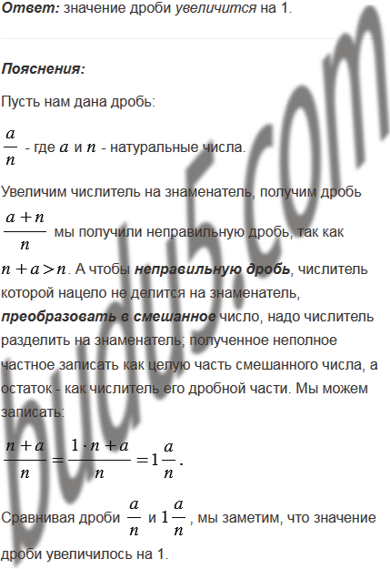 Увеличится или уменьшится значение дроби и на сколько, если её числитель увеличить на знаменатель?