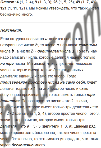 Укажите пять чисел, каждое из которых имеет только три разных делителя. Можно ли утверждать, что таких чисел бесконечно много?