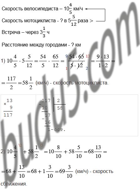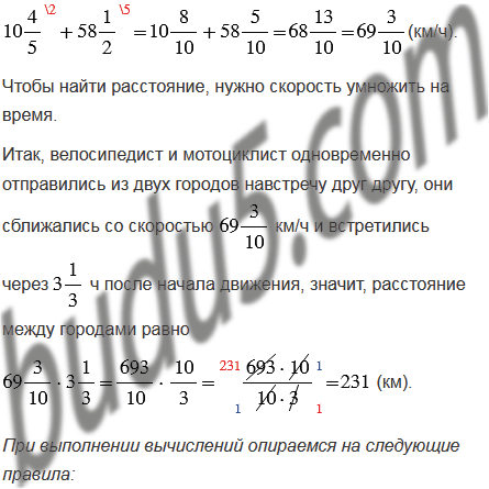 Из двух городов одновременно навстречу друг другу отправились велосипедист и мотоциклист. Велосипедист ехал со скоростью