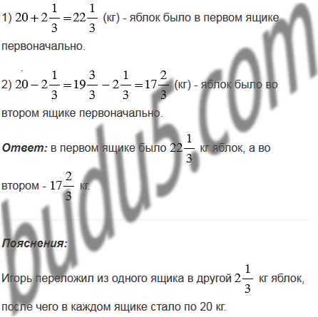 Игорь переложил из одного ящика в другой кг яблок, после чего в каждом ящике стало по 20 кг. Сколько килограммов яблок было в каждом ящике первоначально?