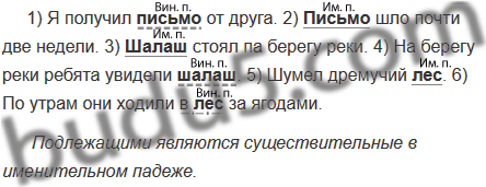 1) Я получил письмо от друга. 2) Письмо шло почти две недели. 3) Шалаш стоял па берегу реки. 4) На берегу реки ребята увидели шалаш. 5) Шумел дремучий лес. 6) По утрам они ходили в лес за ягодами.