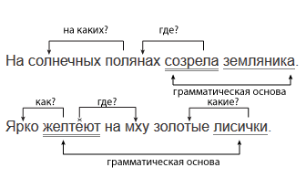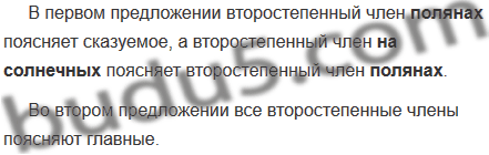 Рассмотрите схемы и определите, какие второстепенные члены поясняют главные члены предложения, какие — другие второстепенные.
