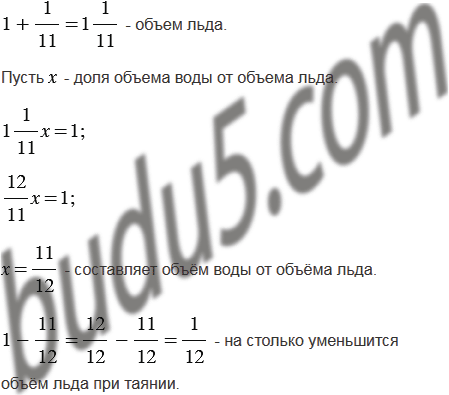 Вода при замораживании увеличивает свой объём на часть. На какую часть уменьшится объём льда при превращении его в воду?