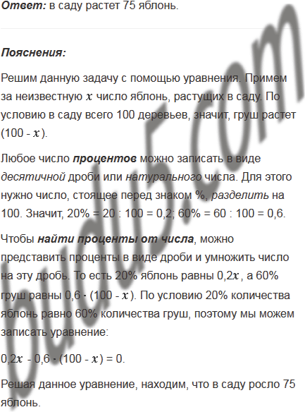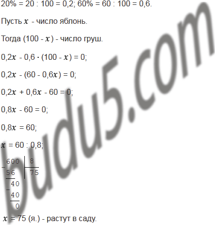 В саду растут груши и яблони, всего 100 деревьев. Сколько яблонь растёт в саду, если 20% их количества равно 60% количества груш?