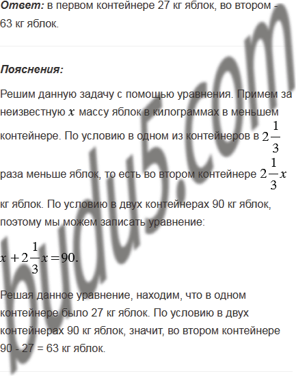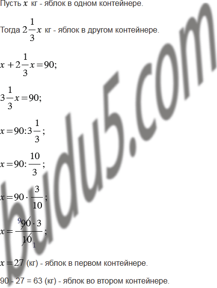 В двух контейнерах 90 кг яблок. Сколько килограммов яблок в каждом контейнере, если в одном из них в раза меньше яблок, чем в другом?