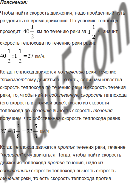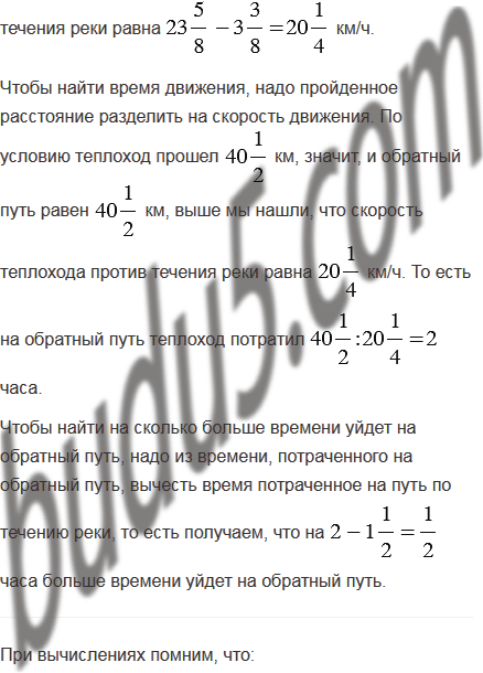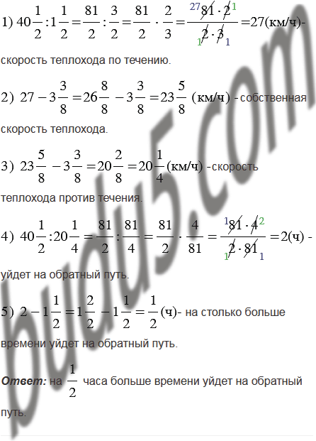 Теплоход проходит км по течению реки за ч. На сколько больше времени уйдет на обратный путь, если скорость течения равна км/ч?