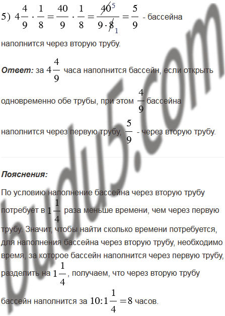 раза меньше времени. За какое время наполнится бассейн, если открыть одновременно обе трубы? Какую часть бассейна наполнит при этом каждая труба?