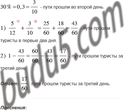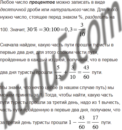 В первый день туристы прошли намеченного пути, во второй - 30% пути, а в третий - остальной путь. Какую часть пути прошли туристы за третий день?