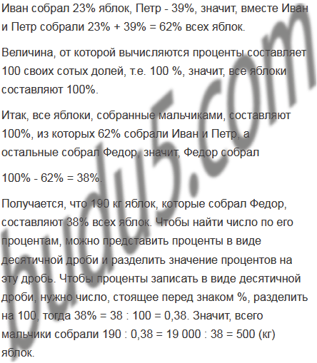 Петр, Федор и Иван собирали яблоки. Иван собрал 23% яблок, Петр - 39%, а Федор - остальные 190 кг. Сколько килограммов яблок они собрали вместе?