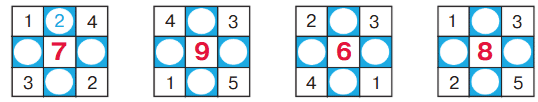 Дописать около каждого кружка число, дополняющая первое число до значения, записанного в цветке.