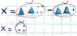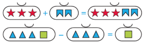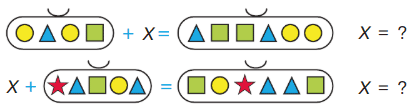 1. Назови неизвестные компоненты действий. Какие фигуры надо положить в пустые мешки?