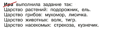 Серёжа к царству растений дописал грибы: мухомор, лисичка. Это неправильно. У грибов есть своё царство.