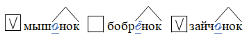 Отметим [img184902] слова, в которых в суффиксе пропущена одна и та же буква безударного гласного звука. Впишем пропущенные буквы и объясним их написание. Выделим в словах суффиксы.