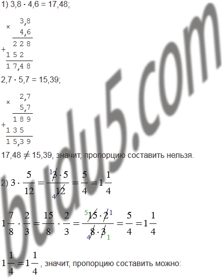 1) 3,8 : 2,7 и 5,7 : 4,6;