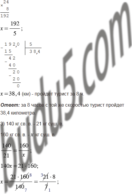 2) За 5 ч турист прошёл 24 км. Какое расстояние он пройдет за 8 ч с той же скоростью?