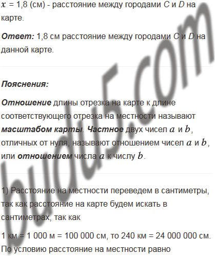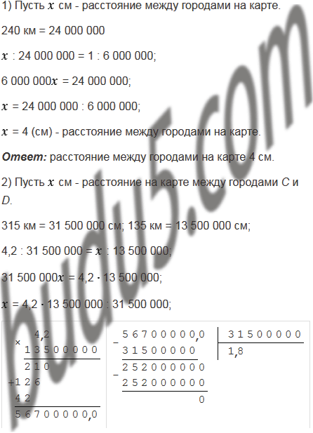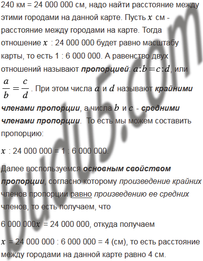 1) Расстояние между двумя городами на местности равно 240 км. Какое расстояние между ними на карте, масштаб которой 1 : 6 000 000?