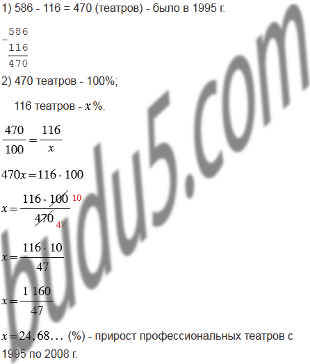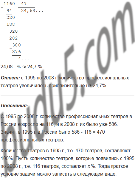 С 1995 по 2008 г. количество профессиональных театров в России возросло на 116, и в 2008 г. их было уже 586. На сколько процентов увеличилось количество профессиональных театров за указанный период? Ответ округлите до десятых.