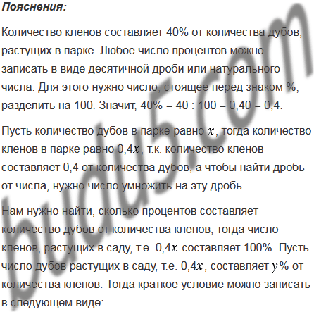 Количество кленов составляет 40% от количества дубов, растущих в парке. Сколько процентов составляет количество дубов от количества кленов?