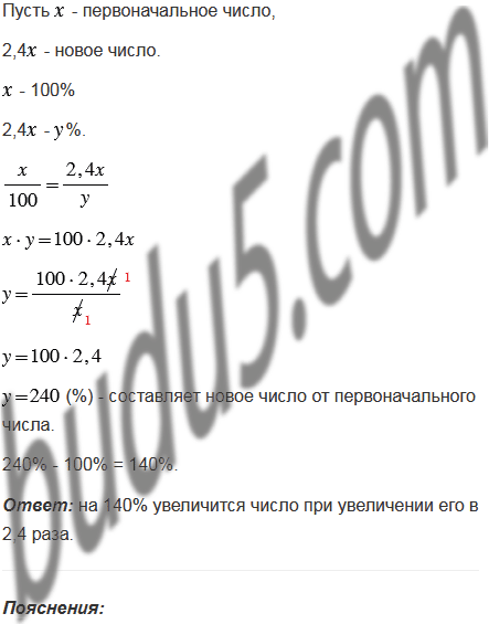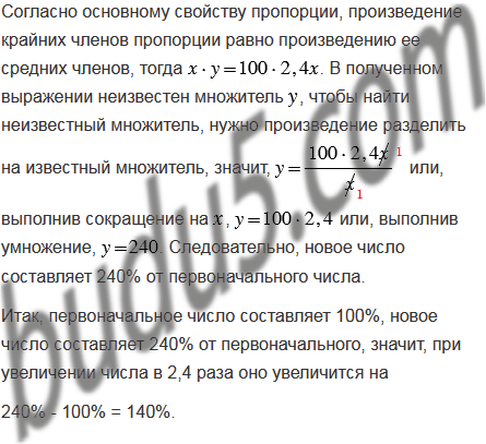 На сколько процентов увеличится число при увеличении его в 2,4 раза?
