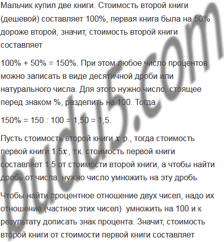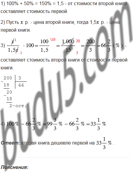 Мальчик купил две книги. Одна книга была на 50% дороже другой. На сколько процентов вторая книга дешевле первой?