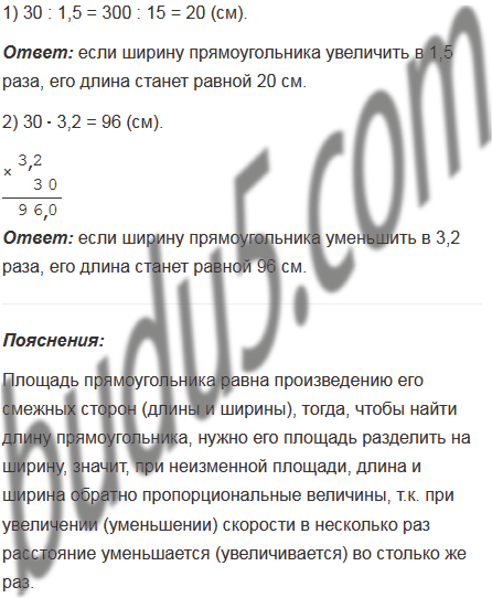 Длина прямоугольника равна 30 см. Какой станет длина, если при неизменной площади ширину прямоугольника: 1) увеличить в 1,5 раза; 2) уменьшить в 3,2 раза?
