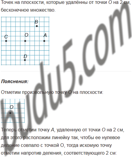 Отметьте на плоскости произвольную точку О. Отметьте четыре точки, удалённые от точки О на 2 см. Сколько ещё можно отметить таких точек?