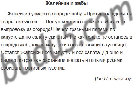 Жалейкин увидел в ог..роде жабу. «Противная ядовитая тварь, сказал он. — Вот уж кого мне не жалко. Я их всех выпровожу из ог..рода! Нечего грязными лапами по к..пусте да по салату ск..кать!» Но как только не осталось в ог..роде жаб, так на к..пусте и салате зав..лись гус..ницы. Остался Жалейкин без к..пусты и без салата. Да ещё и самого по грядкам заставили ползать и голыми руками соб..рать противных гус..ниц.
