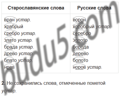2. Какие из старославянских и исконно русских слов не сохранились в современном русском языке?