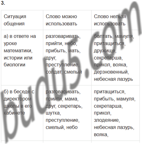 3. Заполните таблицу, вписав в соответствующую строку слова, которые, по вашему мнению, возможны или невозможны в указанной ситуации общения.