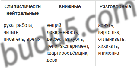 Запишите слова в три столбика: а) стилистически нейтральные, б) книжные, в) разговорные.
