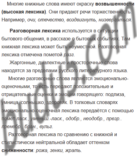 1. Ещё раз бегло перечитайте материал этого и предыдущего параграфов и подумайте, какие группы слов относятся к этим стилистическим разрядам. К каким стилистическим разрядам вы отнесёте книжную лексику, старославянизмы, разговорно-литературные слова, просторечия и жаргон?