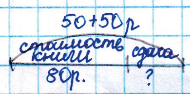 Задание № 3. Игорь покупал книгу. Он отдал в кассу две купюры по 50 рублей. Сколько сдачи ему надо получить, если книга стоит 80 рублей?