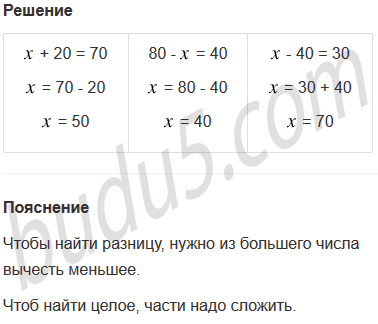 | х + 20 = 70 | 80 - х = 40 | х - 40 = 30 |