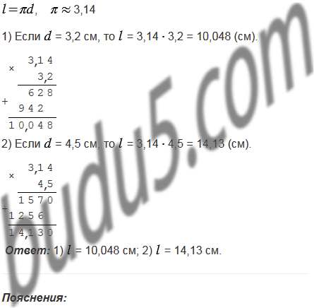 Вычислите длину окружности, диаметр которой равен: 1) 3,2 см; 2) 4,5 см.