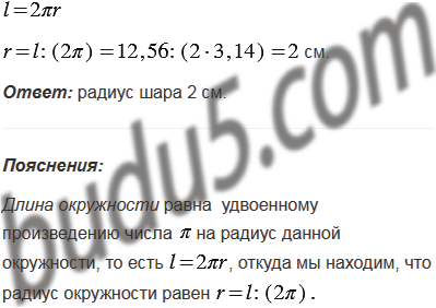 Длина окружности, ограничивающей сечение шара плоскостью, проходящей через его центр, равна 12,56 см. Чему равен радиус шара?
