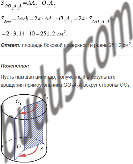 Прямоугольник, площадь которого равна 40 см2, вращают вокруг одной из его сторон. Вычислите площадь боковой поверхности образовавшегося цилиндра.