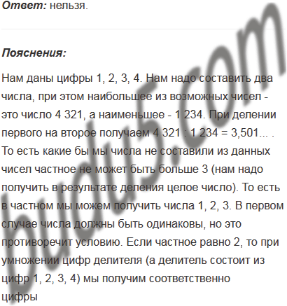 Используя только цифры 1, 2, 3, 4, записали два неравных четырёхзначных числа, у каждого из которых все цифры различны. Может ли одно из этих чисел делиться нацело на другое?