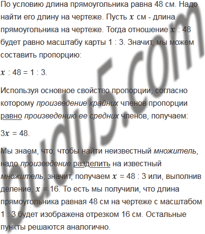 Длина прямоугольника равна 48 см. Какой будет его длина на чертеже, выполненном в масштабе: