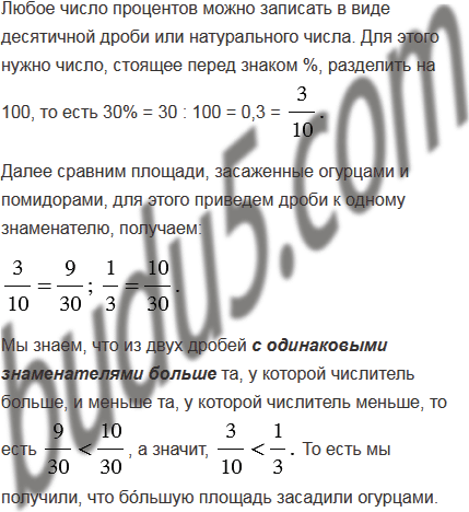 огорода, а помидорами - 30% огорода. Какими овощами, огурцами или помидорами, засадили бóльшую площадь?