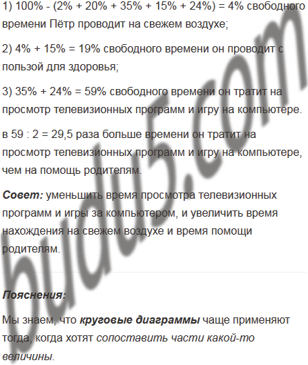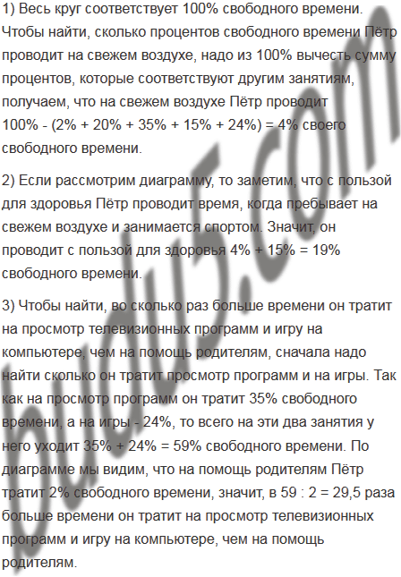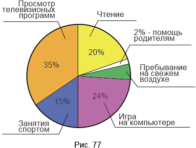 На круговой диаграмме (рис. 77) приведено распределение использования учеником 6 класса Петром Ивановым свободного от учёбы времени. Установите: