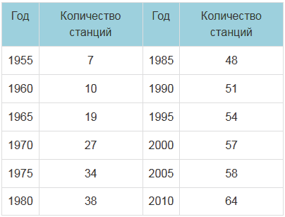 Пользуясь таблицей развития метрополитена в Санкт-Петербурге, постройте соответствующую столбчатую диаграмму.