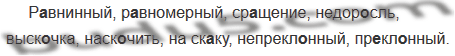 Р..внинный, р..вномерный, ср..щу. ние, недор..сль, выск..чка, наск..чить, на ск..ку, непрекл..нный, пр..кл..нный.