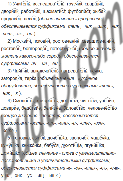 Запишите ряды слов. Определите общее значение существительных в каждом ряду. Подумайте, чем оно обеспечивается. Выделите словообразовательные суффиксы.