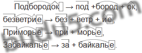 Образец: безвкусица → без + вкус + ица.