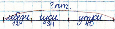 в) На озере собрались 12 лебедей, 34 гуся и 40 уток. Сколько птиц собралось на лесном озере?