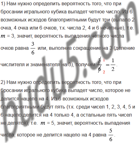 Какова вероятность то, что при бросании игрального кубика выпадет: 1) четное число; 2) число, которое не делится нацело на 4; 3) число, которое не делится нацело на 3; 4) число, кратное 7?