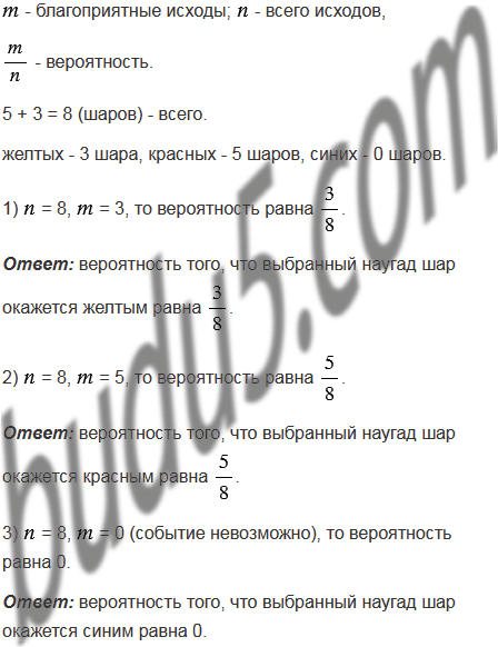 В коробке лежат пять красных и три желтых шара. Какова вероятность того, что выбранный наугад шар окажется: