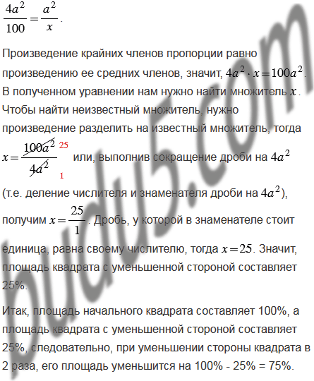 На сколько процентов уменьшится площадь квадрата, если каждую из его сторон уменьшить в 2 раза?