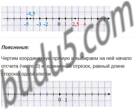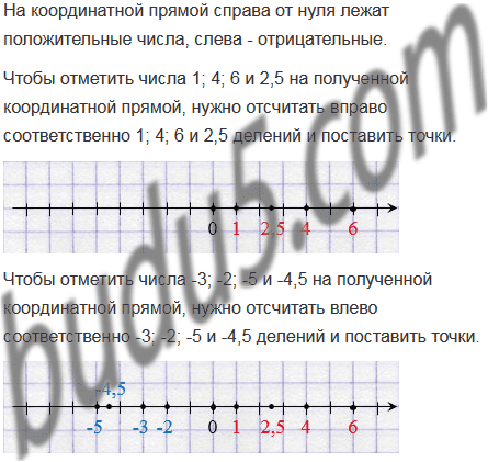Начертите координатную прямую и отметьте на ней числа: 0; 1; 4; -3; 6; -2; -5; 2,5; -4,5.
