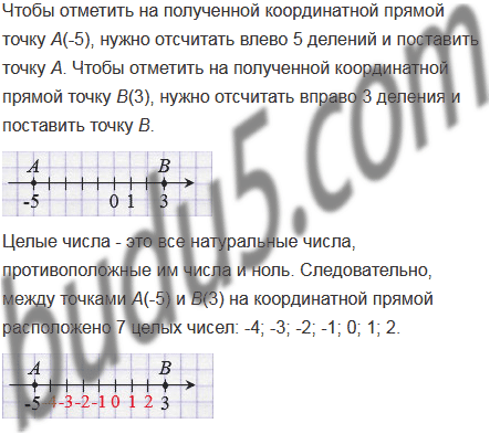 Сколько точек с целыми координатами расположено на координатной прямой между точками А(-5) и В(3)?